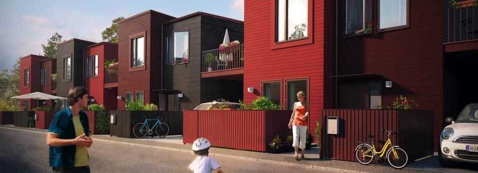 Bostadstyp ca 25 townhouses och 100 lägenheter