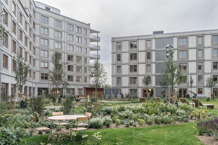 Kvarteret binds samman av en stor och lummig innergård som alla boenden har tillgång till. Innegården ger en parkkänsla och ska ge en bra förutsättning för grönska i stadsmiljö.