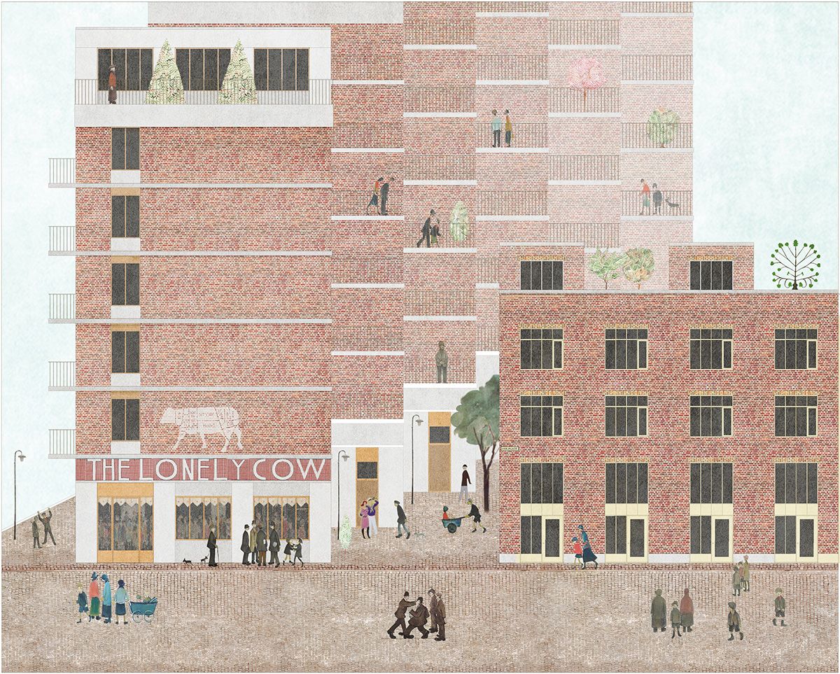 – Vi har valt att blanda både lägenheter och stadsradhus. På så vis blir det en större variation av människor som bor och lever här. När du går genom kvarteret kommer känslan att vara spännande och lekfull. Det är inte alltid tydligt var en lägenhet börjar och slutar, eller vilken dörr som leder vart. Även broar och trappor i olika riktningar bidrar till en kreativ atmosfär. Utemiljön påverkas också mycket av hur de boende väljer att utforma ytorna runt sitt hem. Någon har en grön prunkande trädgård, en annan har byggt en uteplats med färgsprakande lyktor, en tredje har inte så mycket alls. På så vis kommer kvarteret inte vara enformigt och propert, utan en plats där folk bor, trivs och lever.